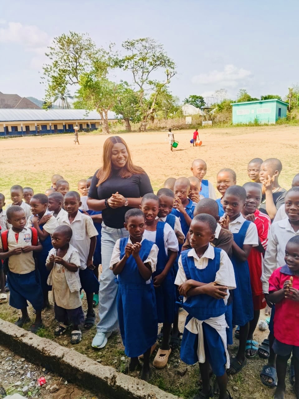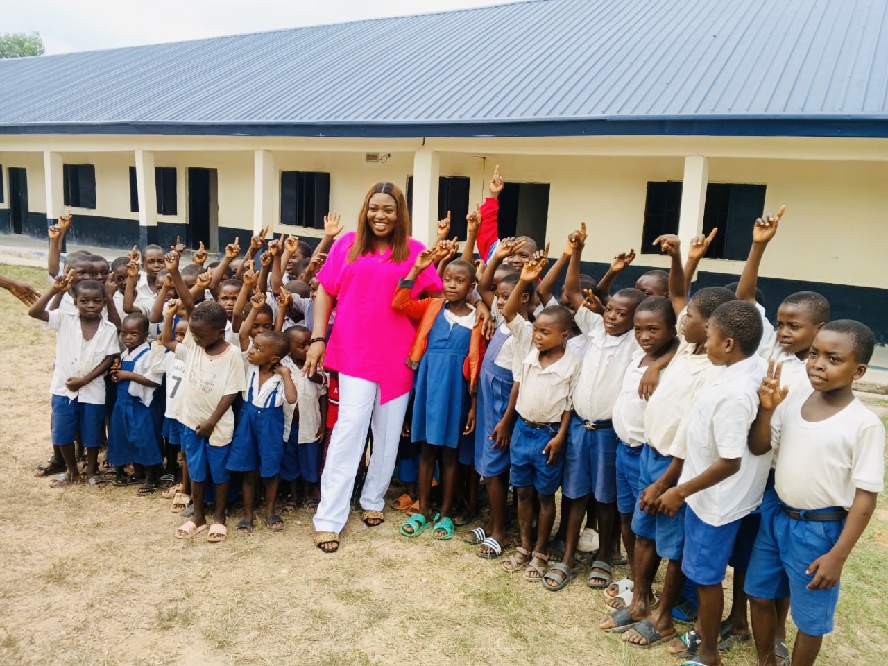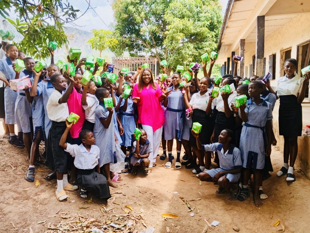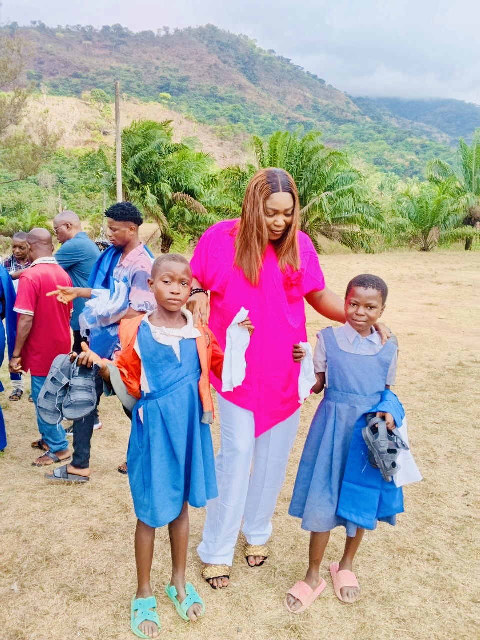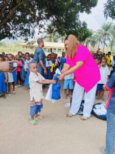 The visit included several primary schools and Bendi Technical College, where hundreds of children received school uniforms, socks, sandals, sanitary pads, and antiperspirants. Many described this initiative as a timely intervention.